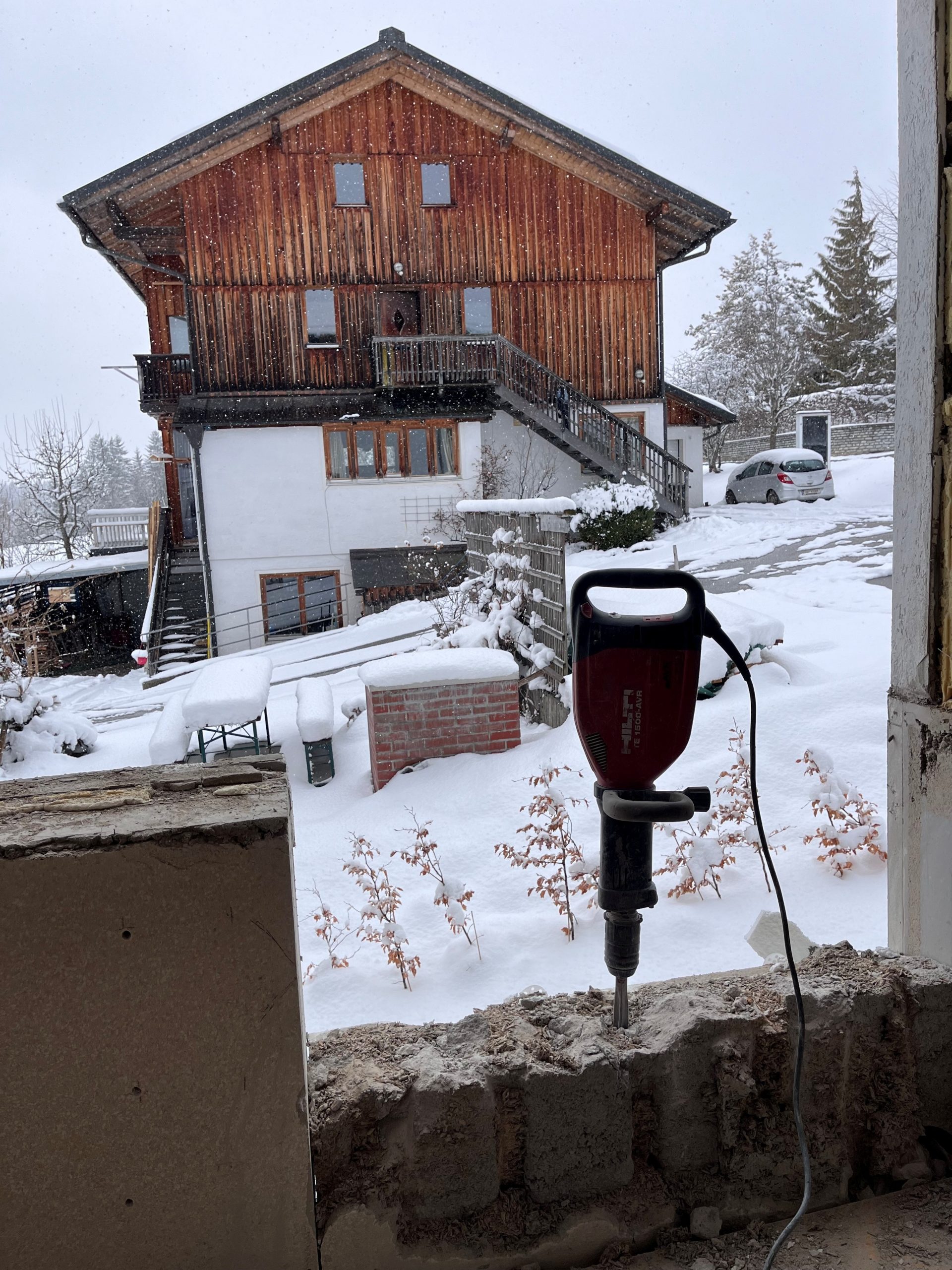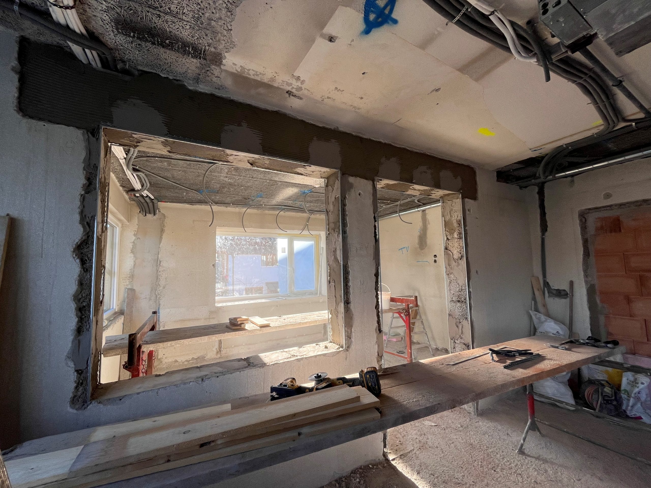 Der Winter ist zurück, doch der neue Durchbruch im Stüberl Richtung Gastraum ist geschafft.