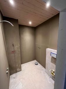 Die Grundierung in den neuen Nordzimmerbädern ist fertig.