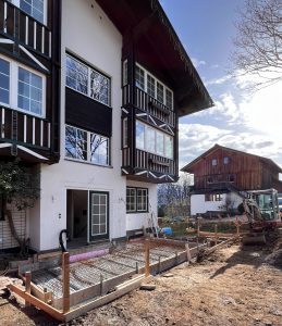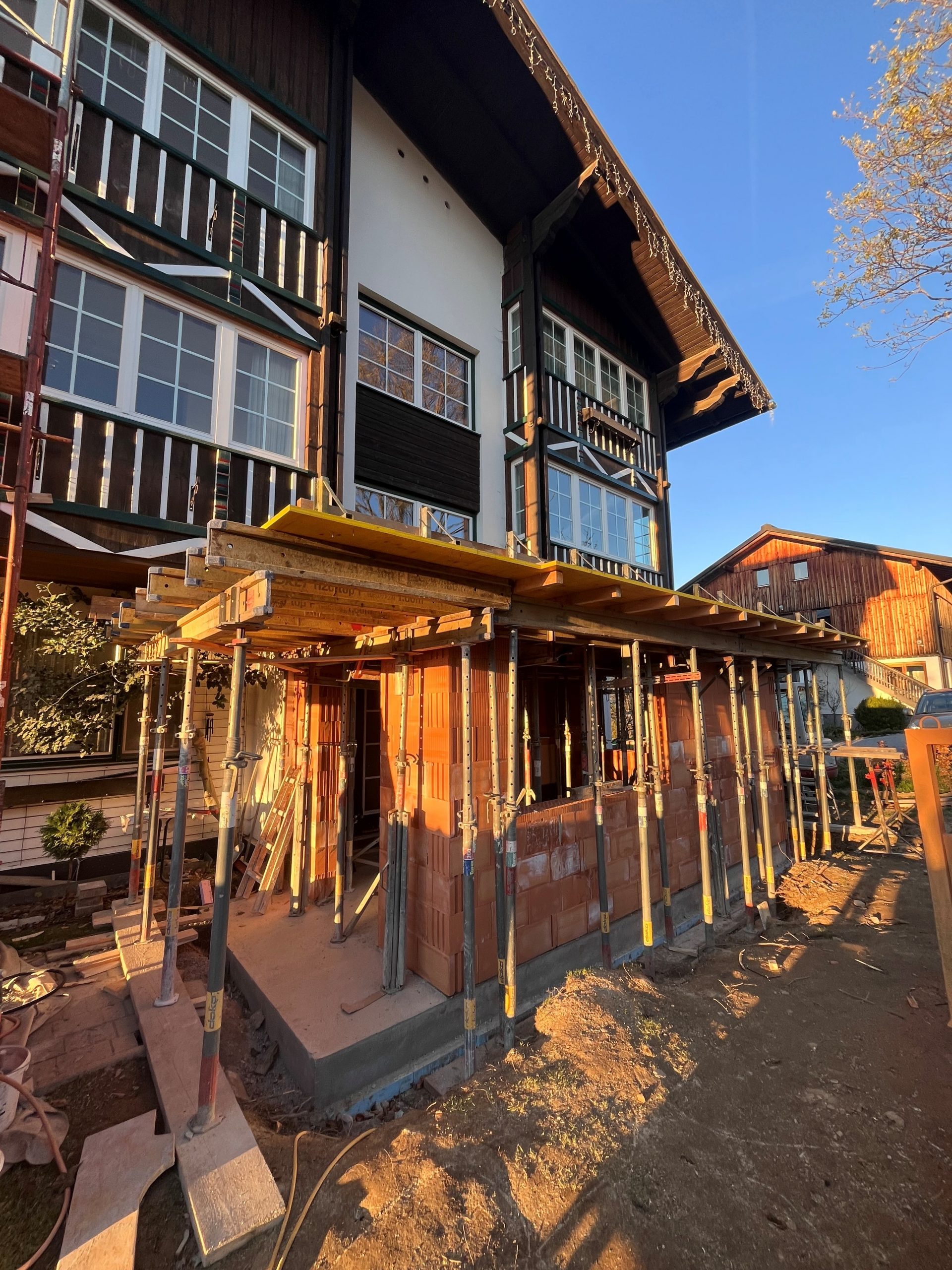 Unser neuer Zubau erstrahlt im Morgenlicht.