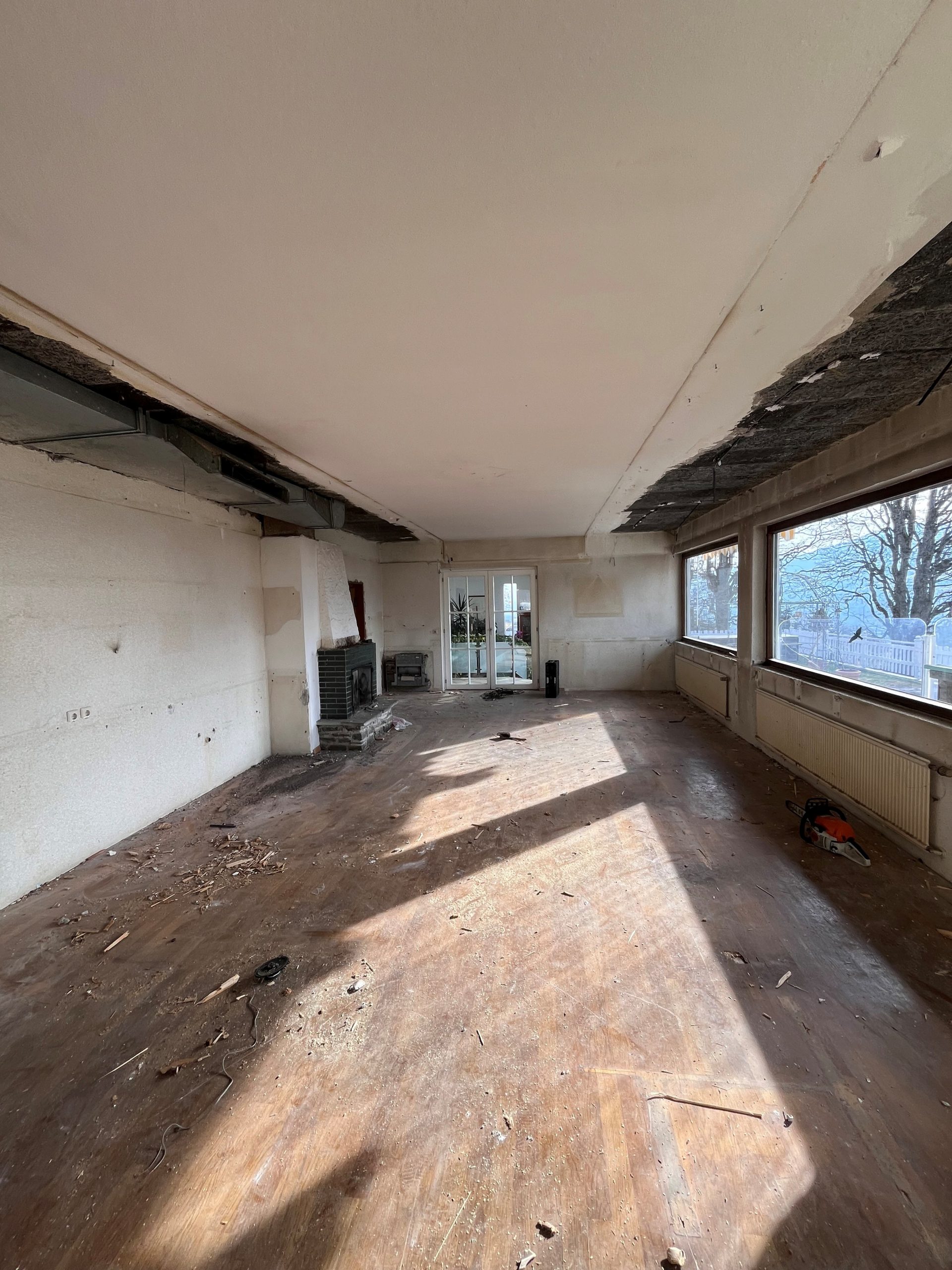 Die Möbel sind raus, jetzt kommt die Decke runter.
