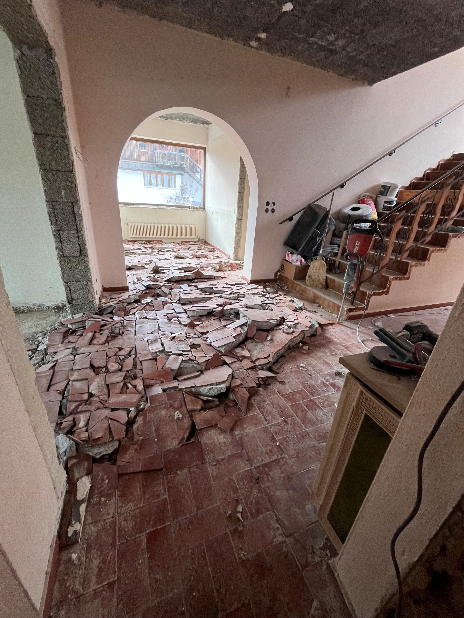 Auch den roten Fließen in der Lobby geht es an den Kragen.